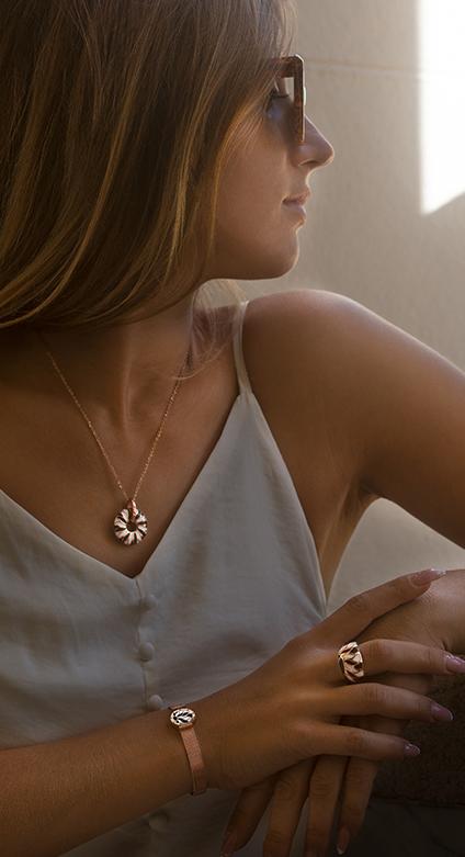 Entdecken Sie die perfekte Mischung aus Emaille und Perlmutt. Eine Kollektion aus einzigartigen Schmuckstücken, deren Zusammensetzung sich an der Schönheit Italiens inspiriert hat.