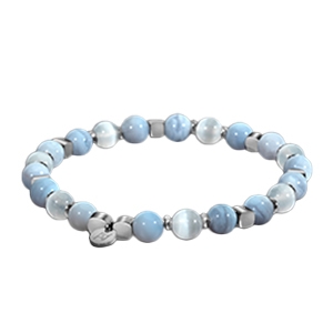 Die symbolische Dimension dieser Verbindung ist ebenfalls kraftvoll. Das Armband erinnert an die Gelassenheit der Jungfrau Maria und die Weisheit des indischen Weisen und symbolisiert den Zyklus von Geburt, Leben und Tod, wie er vom Selenit verkörpert wird.