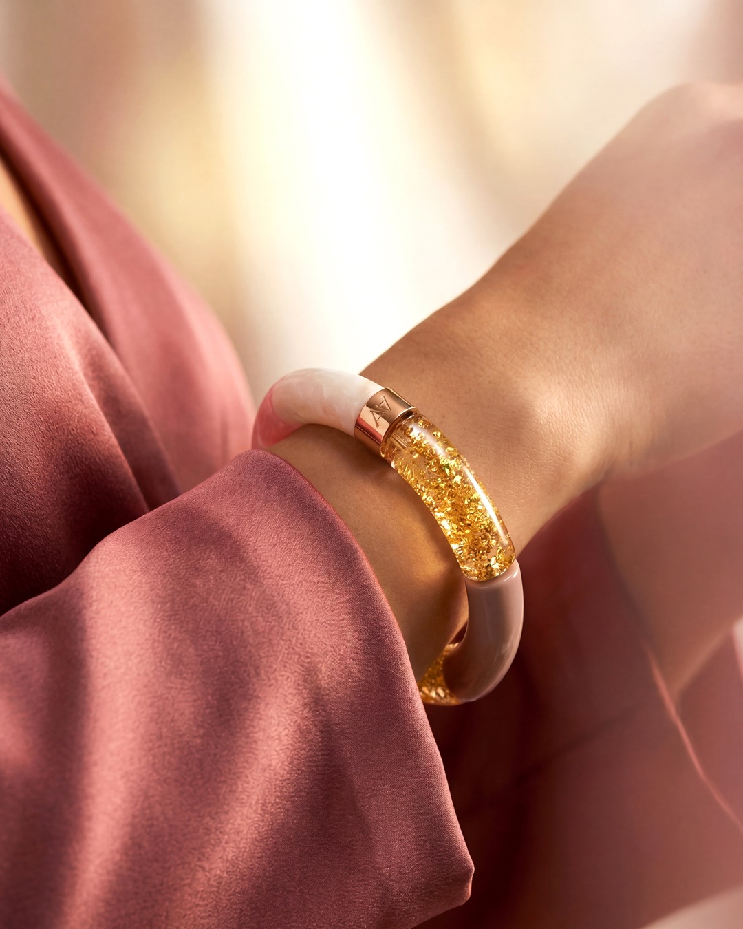 Lassen Sie sich von diesem handgefertigten Acetat-Armband verführen – Symbol für erschwinglichen Luxus und verantwortungsvolle Mode.