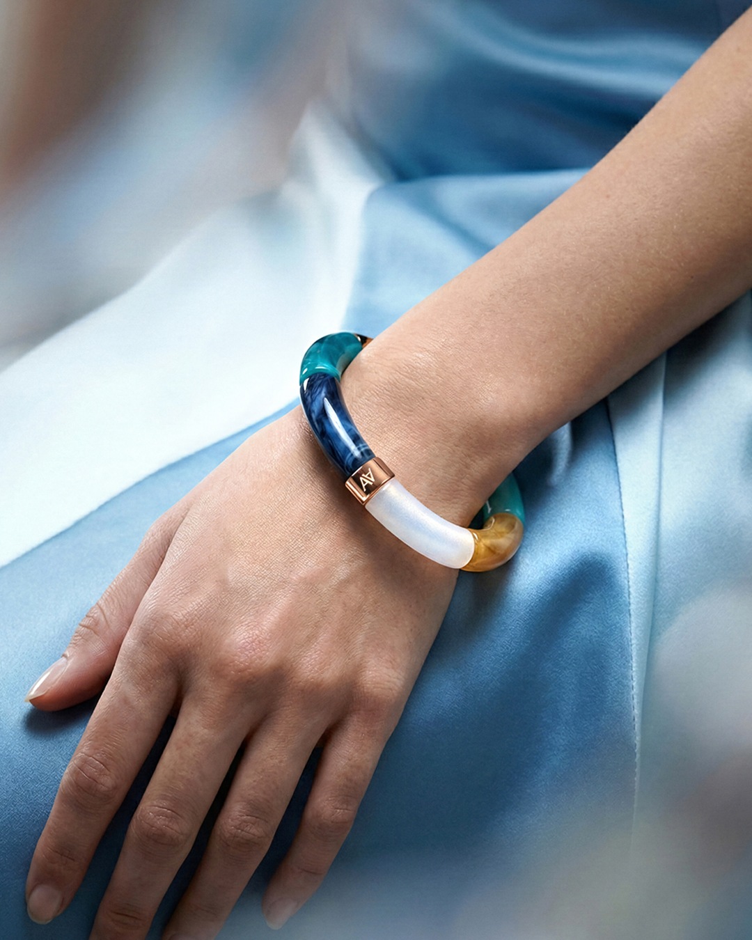 Lassen Sie sich von diesem handgefertigten Acetat-Armband verführen – Symbol für erschwinglichen Luxus und verantwortungsvolle Mode.