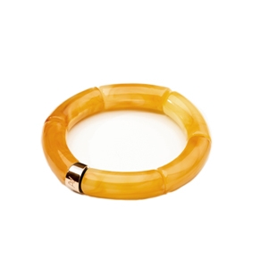 Entdecken Sie die zeitlose Eleganz des Armbands aus Acetat in warmen Bernstein-Orange, signiert von Anna Velazia – ein einzigartiges Schmuckstück, das handwerkliches Können und die Liebe zum Detail verkörpert.