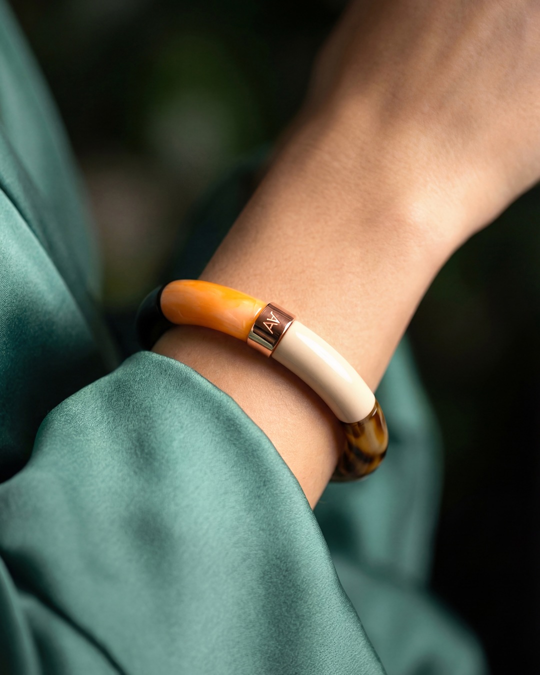 Lassen Sie sich von diesem handgefertigten Acetat-Armband verführen – Symbol für erschwinglichen Luxus und verantwortungsvolle Mode.