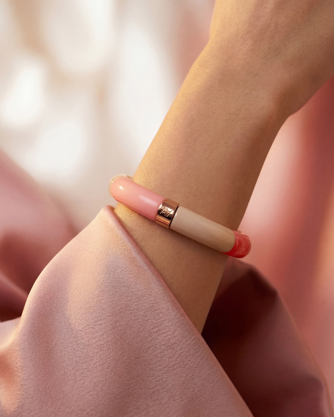 Lassen Sie sich von diesem handgefertigten Acetat-Armband verführen – Symbol für erschwinglichen Luxus und verantwortungsvolle Mode.