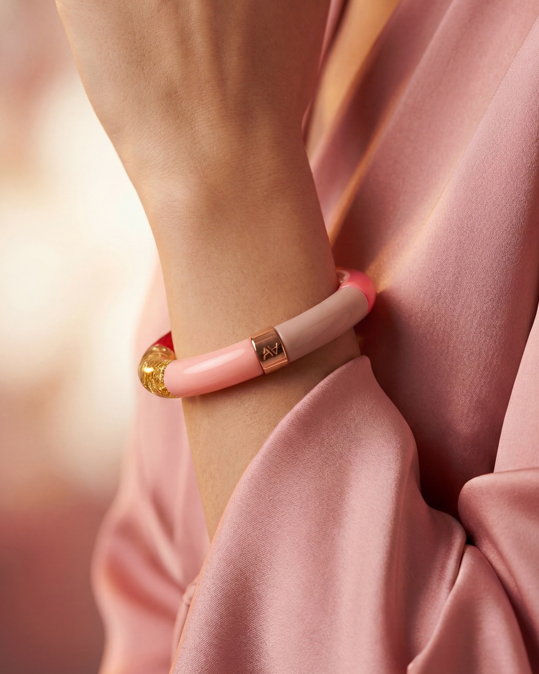 Lassen Sie sich von diesem handgefertigten Acetat-Armband verführen – Symbol für erschwinglichen Luxus und verantwortungsvolle Mode.