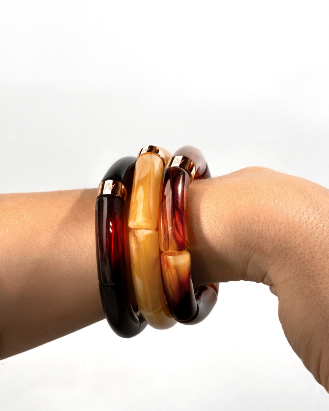 Lassen Sie sich von diesem handgefertigten Acetat-Armband verführen – Symbol für erschwinglichen Luxus und verantwortungsvolle Mode.