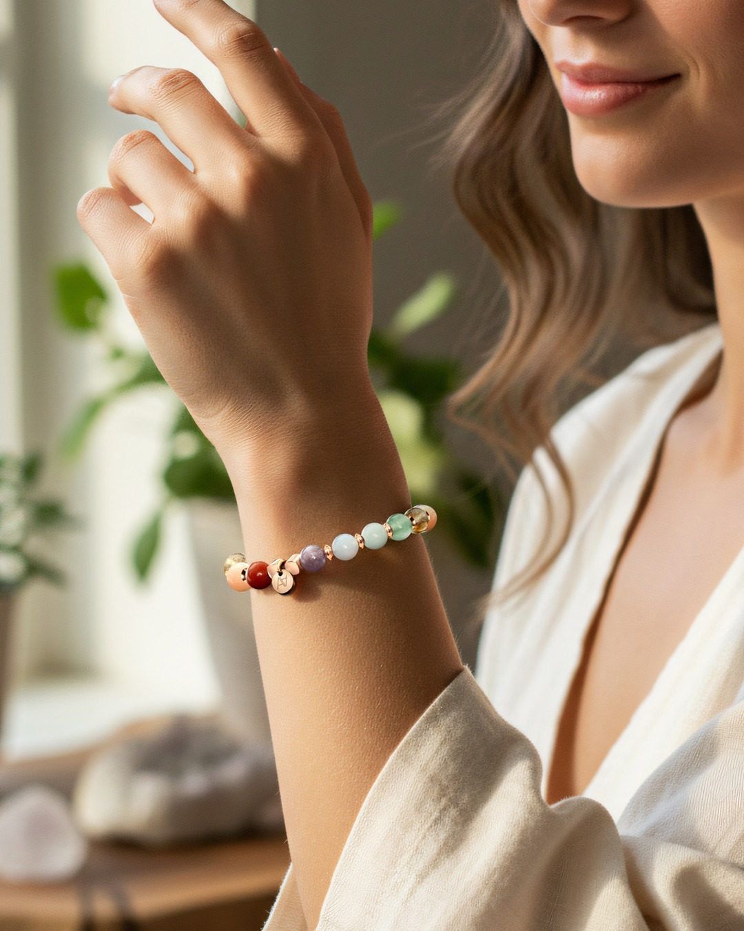 Jedes Armband wird von Hand aus einzigartigen Natursteinen gefertigt, deren Nuancen und Reflexe variieren. Diese leichten Unterschiede zeugen von ihrer Authentizität und machen jedes Schmuckstück zu einem einzigartigen Stück, Träger seiner eigenen Schwingung.
