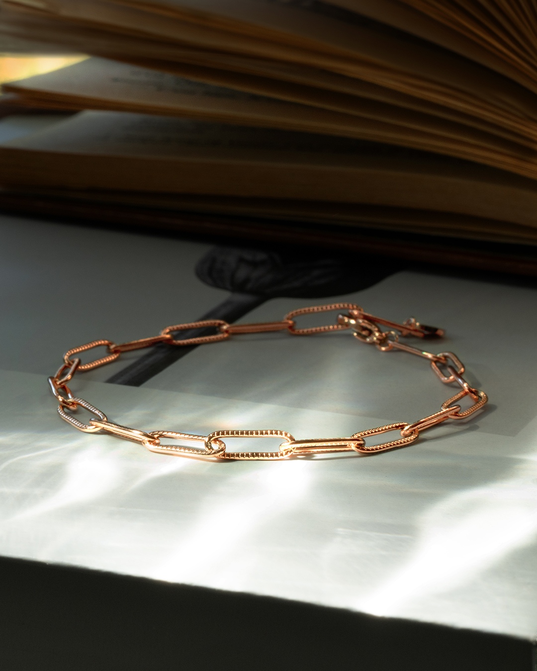 Das Armband Gaia Rosa ist aus roséfarbenen Edelstahl gefertigt und besitzt ineinander gearbeitete, rechteckige Schmuckelemente mit abgerundeten Ecken. Sie können es dank seines cleveren Designs und einer Länge von 21 cm in jede Länge und jedem Kettenglied verstellen. Dieses Armband wird zu einem unverzichtbaren Accessoire, das sich ideal mit anderen Armbändern der Marke Anna Velazia kombinieren lässt.