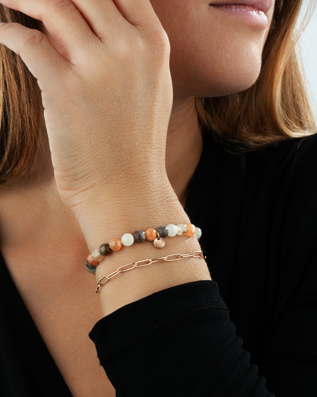 Das Armband Giulia Rosa ist aus rosévergoldetn Edelstahl gefertigt und besitzt kleine,feine Kettenglieder. Sie können es dank seines cleveren Designs und einer Länge von 21 cm in jede Länge und jedem Kettenglied verstellen. Dieses Armband wird zu einem unverzichtbaren Accessoire, das sich ideal mit anderen Armbändern der Marke Anna Velazia kombinieren lässt.