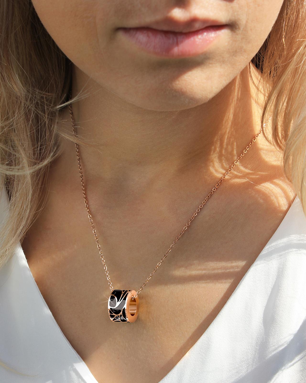 Der Anhänger San Felinio Nero ist aus emailliertem rosafarbenen Edelstahl gefertigt.