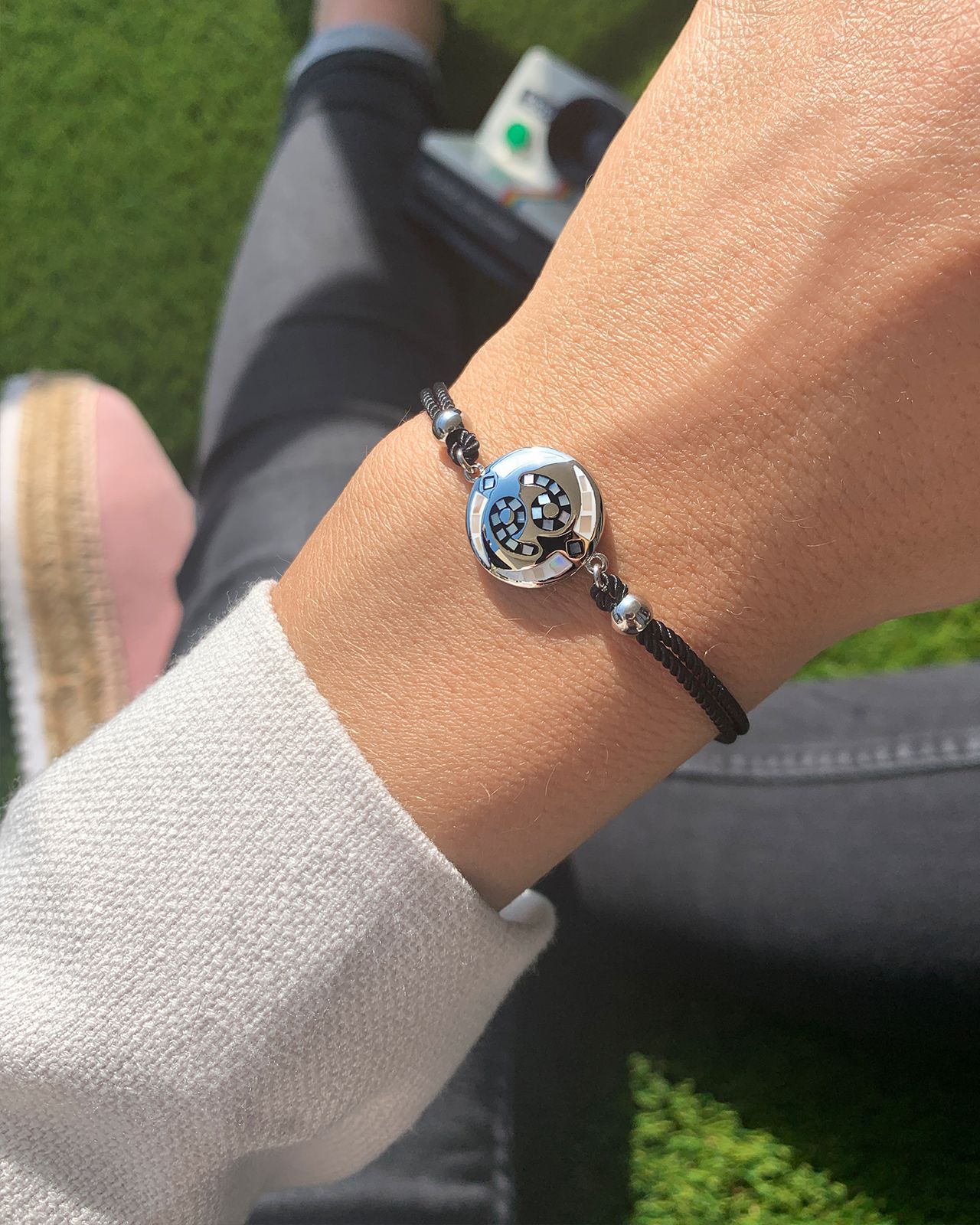 Das Armband Krebs ist aus emailliertem Edelstahl und mit Perlmutt besetzt.