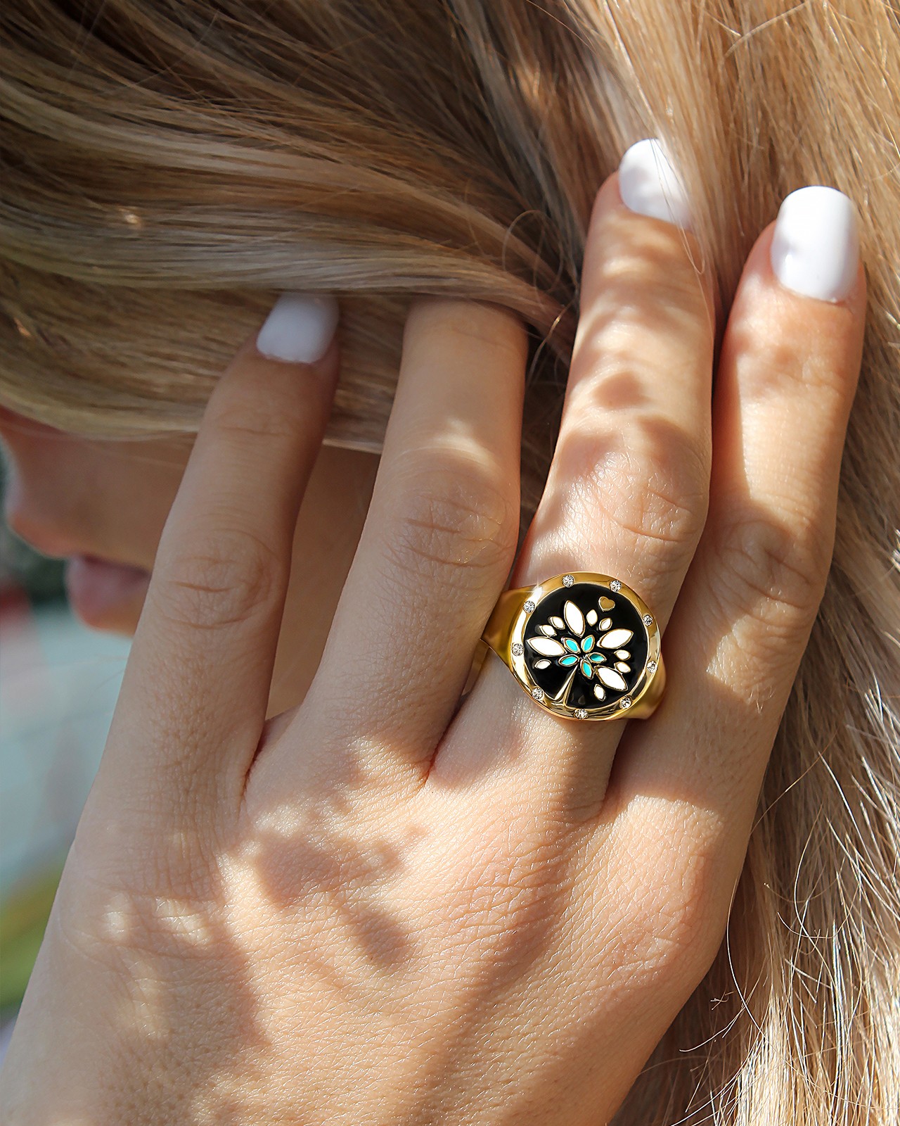 Seine Siegelringform verleiht ihm eine unvergleichliche Schönheit, die Ihre Hand sofort zum Leuchten bringt.