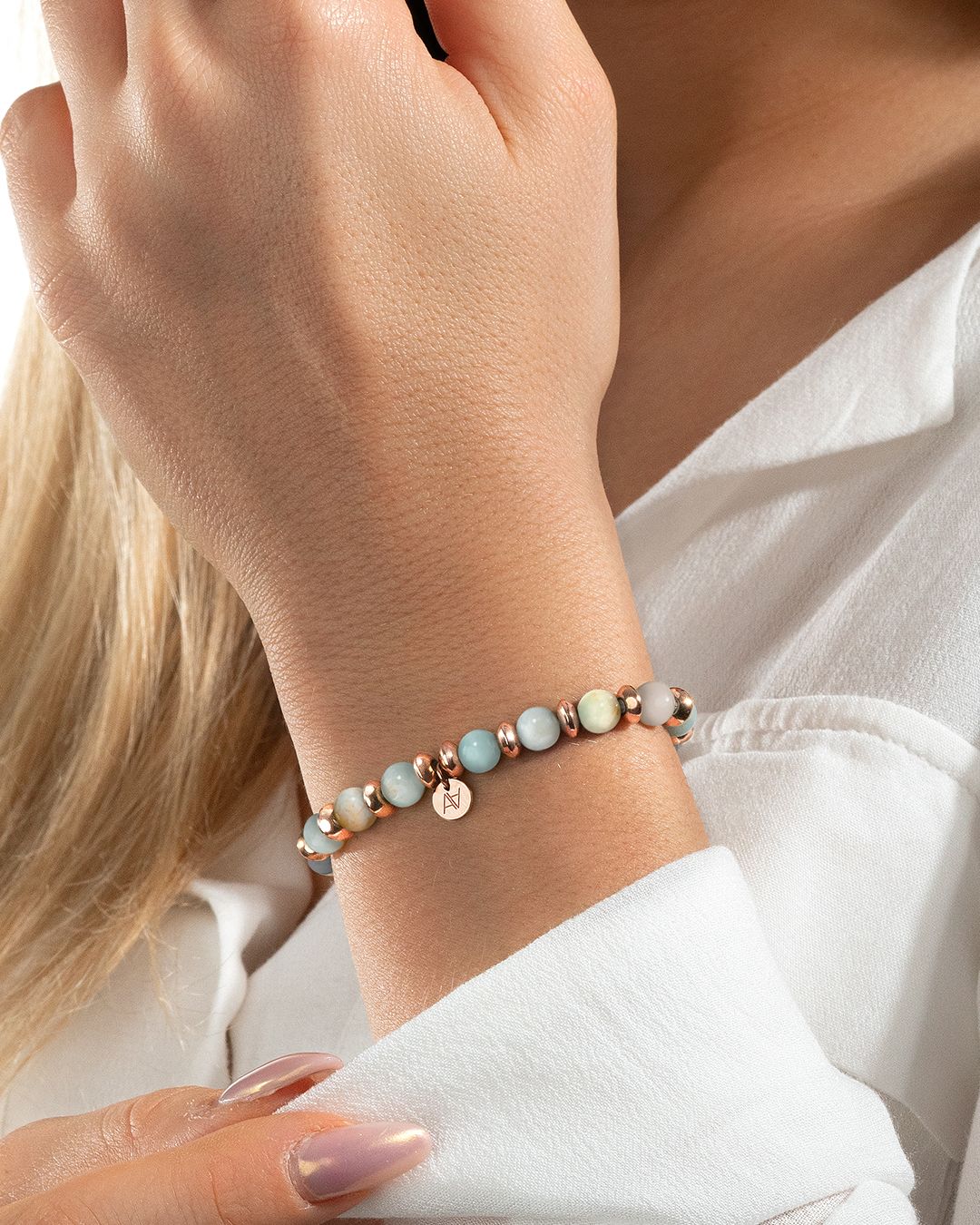 • Matière du bracelet Rosévergoldeter Edelstahl und Amazonit