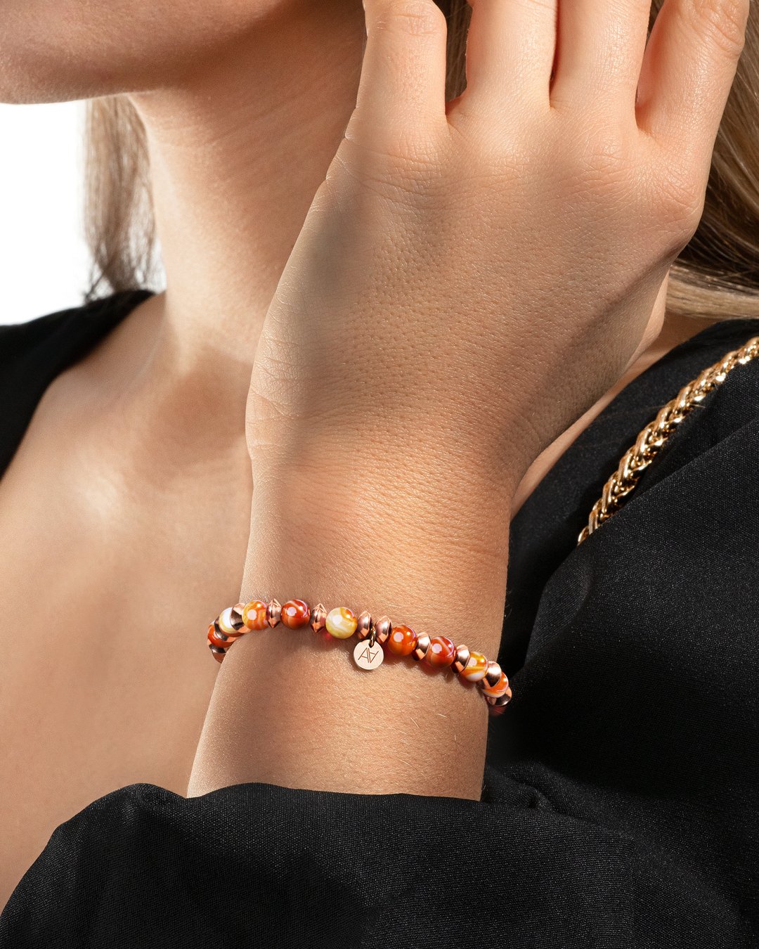 - Material des Armbands Rosefarbener Edelstahl und gebundenem Achat