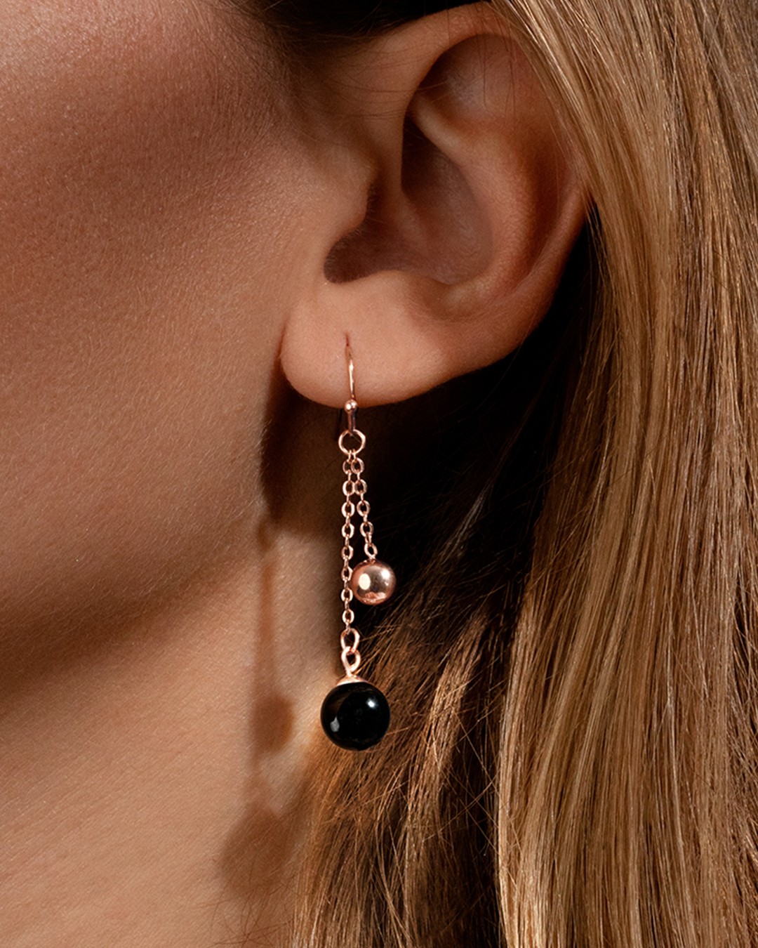 Die Ohrgehänge Leonnessi sind mit einem schwarzen Turmalinstein und einer roséfarbenen Edelstahlkugel verziert, die sanft nach unten hängen. In der Steinheilkunde ist der Turmalin als Stein der Ruhe bekannt. Er beruhigt die Person, die ihn trägt. Unsere Schmuckstücke bestehen aus Natursteinen und sind daher alle unterschiedlich. Deshalb kann es je nach Modell zu Abweichungen in Größe und Farbnuancen kommen. Diese Unterschiede machen jeden Stein einzigartig.
