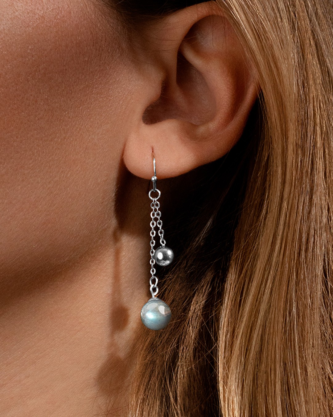 Die Ohrgehänge Oretti sind mit einem Labradorit-Stein und einer zart aufgehängten Stahlkugel verziert.In der Steinheilkunde hat der Labradorit die Eigenschaft, in Stresssituationen Mut zu machen. Unsere Schmuckstücke bestehen aus Natursteinen und sind daher alle unterschiedlich. Daher kann es je nach Modell zu Abweichungen in Größe und Farbnuancen kommen. Diese Unterschiede machen jeden Stein zu einem Unikat.